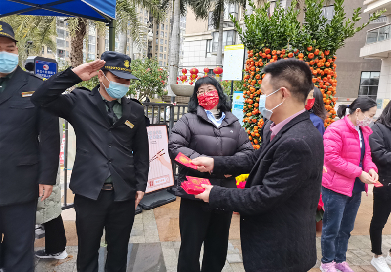 除夕,深圳再度出現(xiàn)疫情。鴻運(yùn)物業(yè)啟動(dòng)疫情防控緊急預(yù)案,鴻運(yùn)物業(yè)黨支部召開(kāi)線上支委會(huì),聯(lián)合下發(fā)《關(guān)于應(yīng)對(duì)深圳“0131”疫情的通知》,要求各物業(yè)服務(wù)中心嚴(yán)格按照區(qū)、街道、社區(qū)部署,將疫情防控措施全面落實(shí)到位,同時(shí)對(duì)特殊群體和特殊情況靈活處理,保證防疫有力度也有溫度。鴻運(yùn)物業(yè)堅(jiān)持紅色思想引領(lǐng),以“紅色物業(yè)”為著力點(diǎn),充分發(fā)揮鴻運(yùn)物業(yè)黨支部黨員應(yīng)急救援隊(duì)在疫情防控工作中的中堅(jiān)力量。鴻運(yùn)物業(yè)黨支部黨員應(yīng)急救援隊(duì)由黨員、一線保安員、志愿者組成,緊急時(shí)刻、防疫一線,他們的身影從不缺席。紅馬甲披在黑色的保安服上,顯得更加醒目。2月7日,鴻運(yùn)物業(yè)星悅豪庭物業(yè)服務(wù)中心保安員盧育林同志執(zhí)勤時(shí),發(fā)現(xiàn)一輛黑車載著廣西百色返深人員在小區(qū)附近下車,立即通報(bào)社區(qū),獲得新橋街道、上星社區(qū)、上星股份公司大力褒獎(jiǎng)。多名領(lǐng)導(dǎo)親臨鴻運(yùn)物業(yè)星悅豪庭物業(yè)服務(wù)中心,慰問(wèn)盧育林同志,對(duì)鴻運(yùn)物業(yè)的防疫工作給與高度贊賞。 2月8日,公司和支部一同慰問(wèn)春節(jié)防疫員工,支部代表盧杏、鐘恩榮同志前往公司各物業(yè)服務(wù)中心,對(duì)春節(jié)在崗員工的辛勤付出表示感謝,并致以新年的祝福。 一個(gè)支部就是一座“堡壘”,一名黨員就是一面“旗幟”。面對(duì)疫情,鴻運(yùn)物業(yè)黨支部“疫”往直前、“疫”無(wú)反顧、“疫”不容辭,鴻運(yùn)物業(yè)黨支部黨員應(yīng)急救援隊(duì)竭力發(fā)揮自身熱量,用小小光芒匯聚堅(jiān)實(shí)防疫力量。
