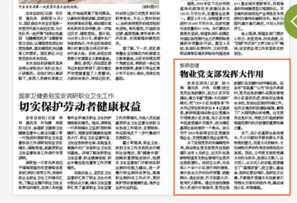 6月11日,寶安日?qǐng)?bào)以“新橋街道物業(yè)黨支部發(fā)揮大作用”為題,對(duì)我司黨支部工作進(jìn)行報(bào)道。以下為報(bào)道全文: (寶安日?qǐng)?bào)數(shù)字版·新聞?wù)故尽?(寶安日?qǐng)?bào)紙質(zhì)版·新聞?wù)故?↑↑) 鴻運(yùn)物業(yè)黨支部將再接再厲,充分發(fā)揮黨支部的帶頭作用和黨員的模范作用,將黨建融入物業(yè)管理工作中,助力社區(qū)建設(shè),助力基層治理,助力社會(huì)安定!