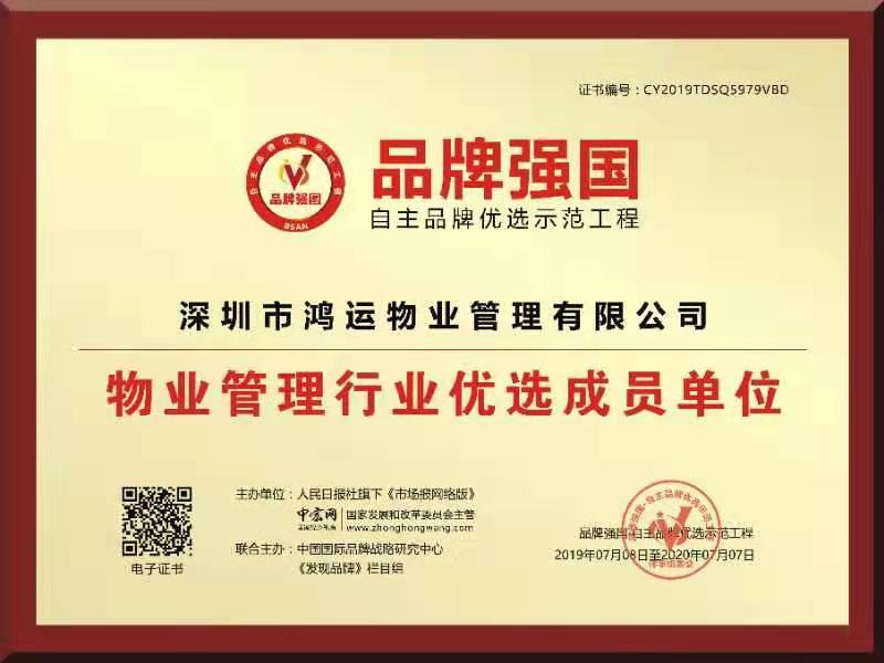 十年磨一劍,一朝試鋒芒。鴻運(yùn)物業(yè)品牌建設(shè)和提質(zhì)增效工作取得顯著成績(jī),于2018年10月至今年7月,在短短數(shù)月內(nèi),先后斬獲2018年物業(yè)服務(wù)行業(yè)中國(guó)優(yōu)選品牌、2018中國(guó)(物業(yè)管理)行業(yè)十大創(chuàng)新品牌、2018中國(guó)創(chuàng)新先鋒企業(yè)、2019年物業(yè)管理行業(yè)優(yōu)選成員單位四大獎(jiǎng)項(xiàng),鴻運(yùn)物業(yè)董事總經(jīng)理陳總更是被評(píng)選為2018年中國(guó)新經(jīng)濟(jì)(年度)影響力人物。 擇優(yōu)而選,彰顯實(shí)力與口碑 2018年9月,經(jīng)由中國(guó)優(yōu)選品牌促進(jìn)發(fā)展工程深圳地區(qū)組委會(huì)實(shí)地調(diào)查和嚴(yán)格篩選,“鴻運(yùn)物業(yè)”脫穎而出,被評(píng)選為物業(yè)服務(wù)行業(yè)中國(guó)優(yōu)選品牌,獲得央視CCTV《發(fā)現(xiàn)品牌》欄目報(bào)道,同時(shí)公司信息有幸刊登在中國(guó)優(yōu)選品牌促進(jìn)發(fā)展工程官方網(wǎng)站上。 突破創(chuàng)新,贏得專家和市場(chǎng)肯定 2019年1月,鴻運(yùn)物業(yè)陳總受邀作為行業(yè)代表嘉賓,在北京人民大會(huì)堂參加2019中國(guó)新經(jīng)濟(jì)品牌峰會(huì)暨創(chuàng)新榜樣巡禮活動(dòng)會(huì)議,被現(xiàn)場(chǎng)授予2018中國(guó)(物業(yè)管理)行業(yè)十大創(chuàng)新品牌、2018中國(guó)創(chuàng)新先鋒企業(yè)的獎(jiǎng)?wù)拢员碚螟欉\(yùn)物業(yè)在中國(guó)物業(yè)行業(yè)上的創(chuàng)新投入。 銳意進(jìn)取,推動(dòng)中國(guó)品牌崛起 2019年7月,鴻運(yùn)物業(yè)協(xié)助國(guó)家發(fā)改委、人民日?qǐng)?bào)社,推動(dòng)品牌強(qiáng)國(guó)計(jì)劃、自主品牌優(yōu)選示范工程。鴻運(yùn)物業(yè)作為物業(yè)管理行業(yè)全國(guó)首家入圍品牌強(qiáng)國(guó)計(jì)劃,與支付寶、碧桂園、恒大集團(tuán)、格力等強(qiáng)勢(shì)占領(lǐng)稀缺性資源,緊跟國(guó)家政策推動(dòng)品牌戰(zhàn)略方針,謀跨越、促升級(jí)、破壁壘、猛崛起。 未來,鴻運(yùn)物業(yè)將再接再...